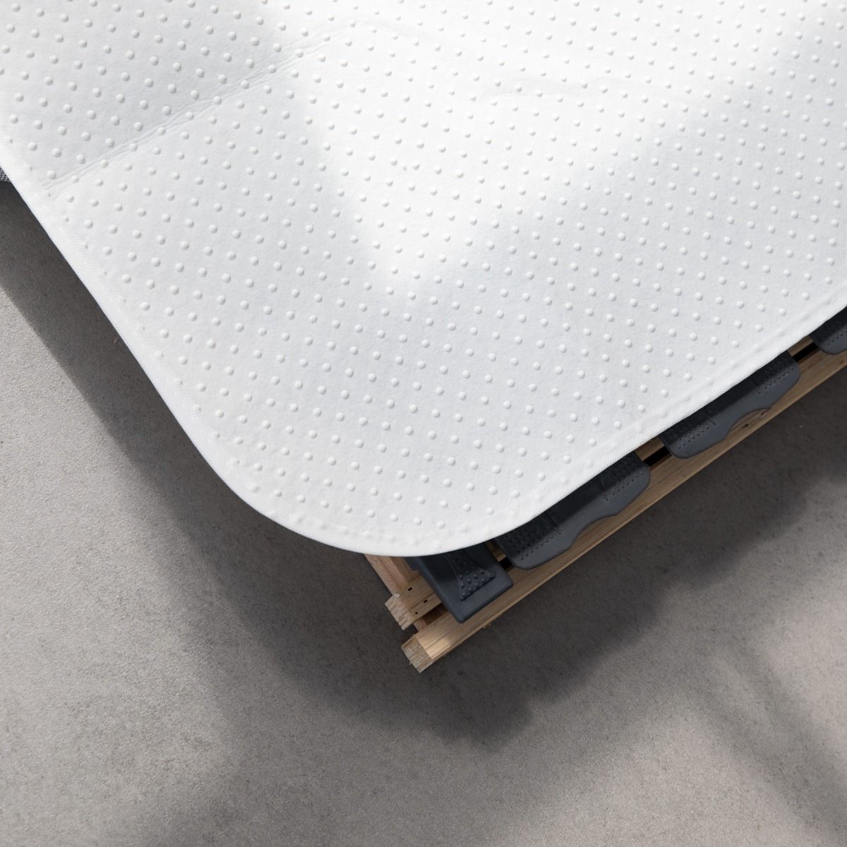 De onderkant beschermt uw matras optimaal, en voorkomt door haar duizenden antislip-nopjes het verschuiven. De zachte, witte molton bovenzijde koestert juist de matras.