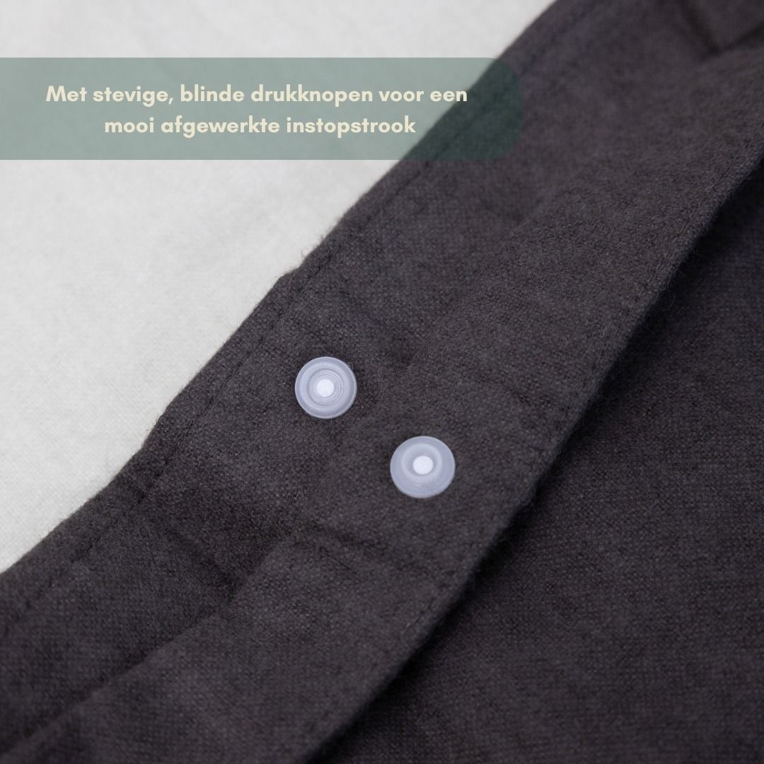 - Verlengde dubbele instopstrook over de gehele breedte met drukknoopjes.