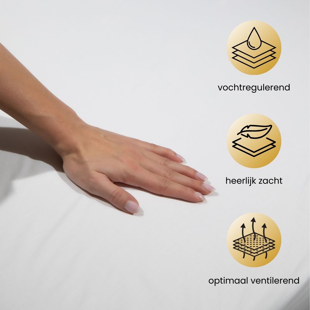 - Hypoallergeen en Huidvriendelijk: Het hoeslaken is hypoallergeen en biedt bescherming tegen stofmijt en schimmels. Perfect voor mensen met een gevoelige huid of allergieën.