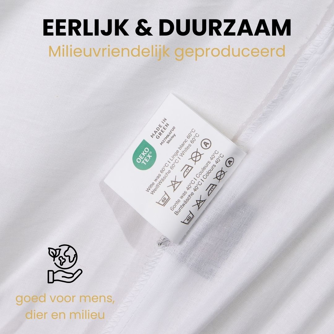 - Duurzaam en Makkelijk te Onderhouden: Machinewasbaar tot 60°C en dankzij de krimpvrije stof blijft de pasvorm behouden. Het hoeslaken is ook strijkvrij, wat het onderhoud gemakkelijk maakt.
