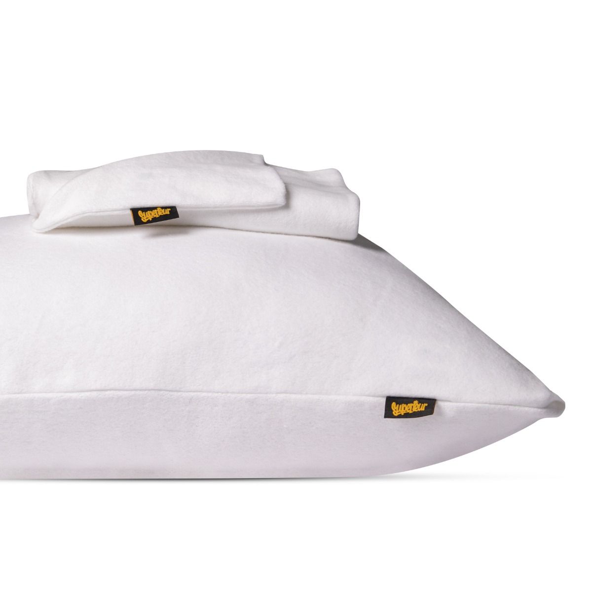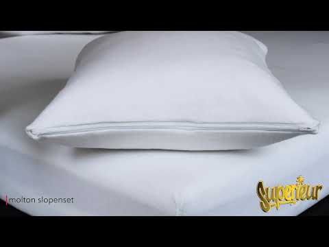 2 Gerieflijke, sublieme Superieur© molton kussenslopen; de ideale bescherming van uw hoofdkussen. Gebruik deze heerlijke molton slopen voor onder uw normale kussensloop, voor optimale bescherming en 'n voortreffelijk comfort. Deze Molton onderslopen houden uw kussens fris, proper en hygiënisch. Zware kwaliteit met ronduit perfecte pasvorm, door de subtiele en onvoelbare rits, voor eenvoudig en strak opmaakgemak. Deze molton onderslopen zijn vervaardigd van extra dik en geruwd katoen, zodat de molton optimaal vocht absorbeert. Vervaardigd van (50%) contactdraden van 100% puur katoen, gebleekt (dus niet geverfd, want geverfd katoen neemt minder transpiratievocht op), zorgvuldig geblend (50%) met High-tec elastische Elastofan© inslagdraden. Ze houdt uw hoofdkussen gegarandeerd in perfecte conditie. Extreem hoog absorberend vermogen. De maat van de slopen is 60x70cm, dus eenvoudig bruikbaar voor hoofdkussens van 40 t/m 60cm hoog, en 60 tot 70cm breed.
