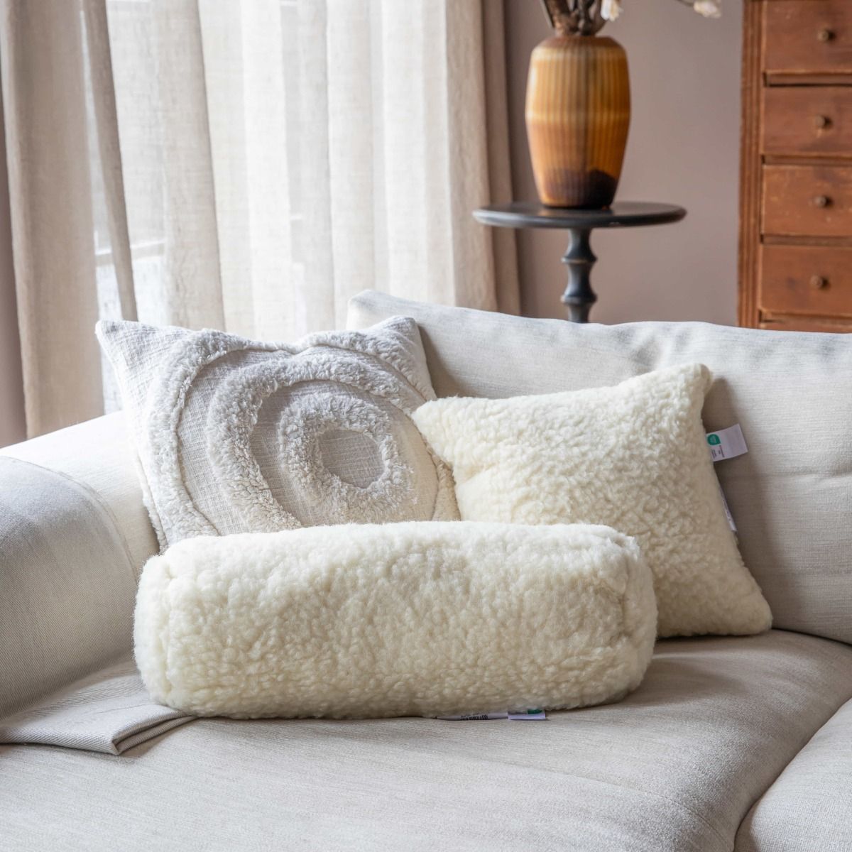 Rijkelijk gevuld met ruim 350gram zuivere scheerwollen wolbolletjes, voor een puur natuurlijk ondersteunend comfort voor bij u op de bank of lekker in bed.