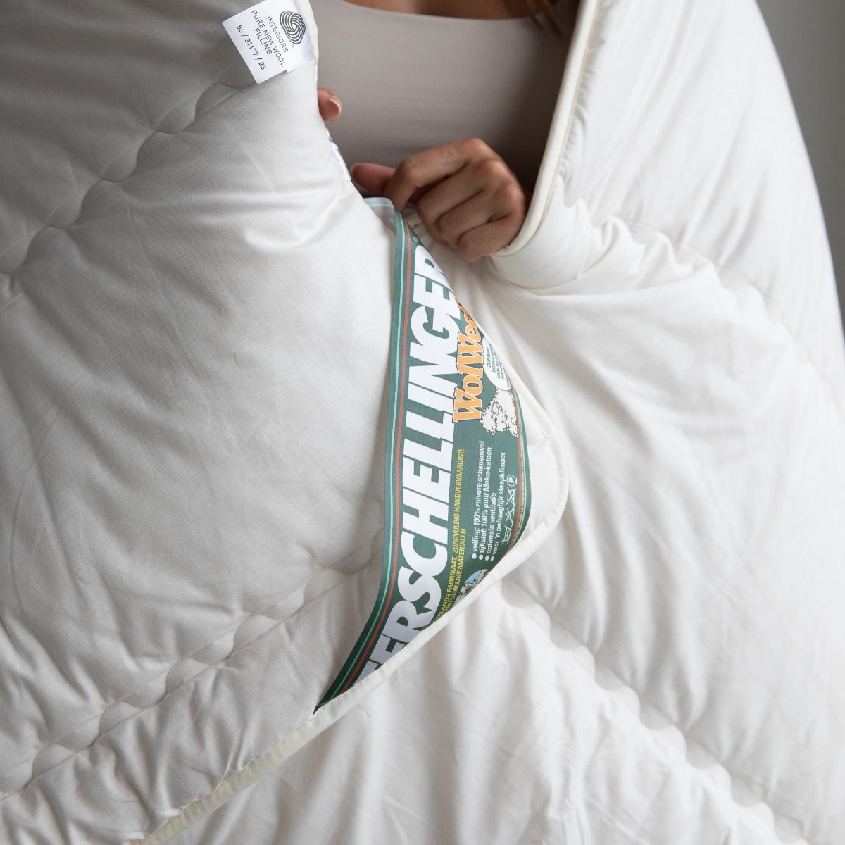 De extreem gekroesde wol-kwaliteit vormt ’n luxe laag van miljoenen luchtkussentjes, die zorg dragen voor optimale ventilatie, onovertroffen vochtregulatie en een unieke warmtespreiding. De gekaarde wol wordt zo behandeld, dat alle natuurlijke ingrediënten (zoals Lanoline) behouden blijven, zodat de unieke werking van wol volledig gehandhaafd blijft. De dekbedden zijn volledig doorgestikt in banen, zodat de edele vulling nooit kan verschuiven en het dekbed soepel om het lichaam voegt. Terschellinger© dekbedden zijn brandvertragend, vlamdovend en worden 3 jaar volledig gegarandeerd. Voorzien van sterke metalen drukknopen. Kortom:’n Ideaal dekbed voor zomer én winter van absolute topkwaliteit. Van top tot teen natuurlijk comfort…