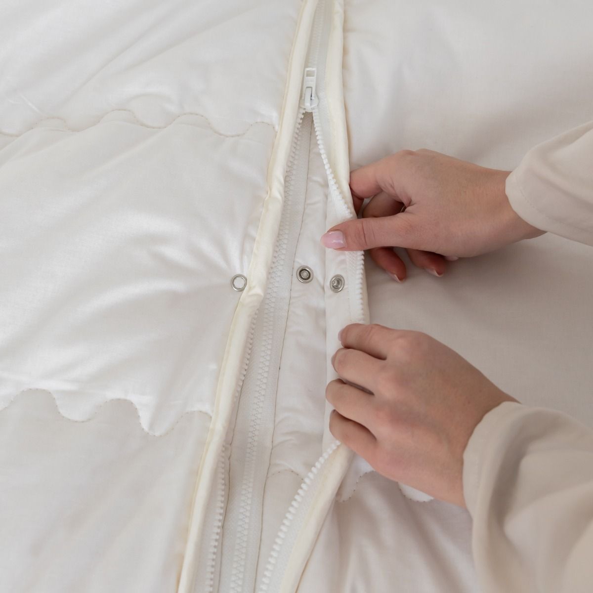 Tijkstof: 100% zijdezachte ongebleekte en ongeverfde naturel-katoen.